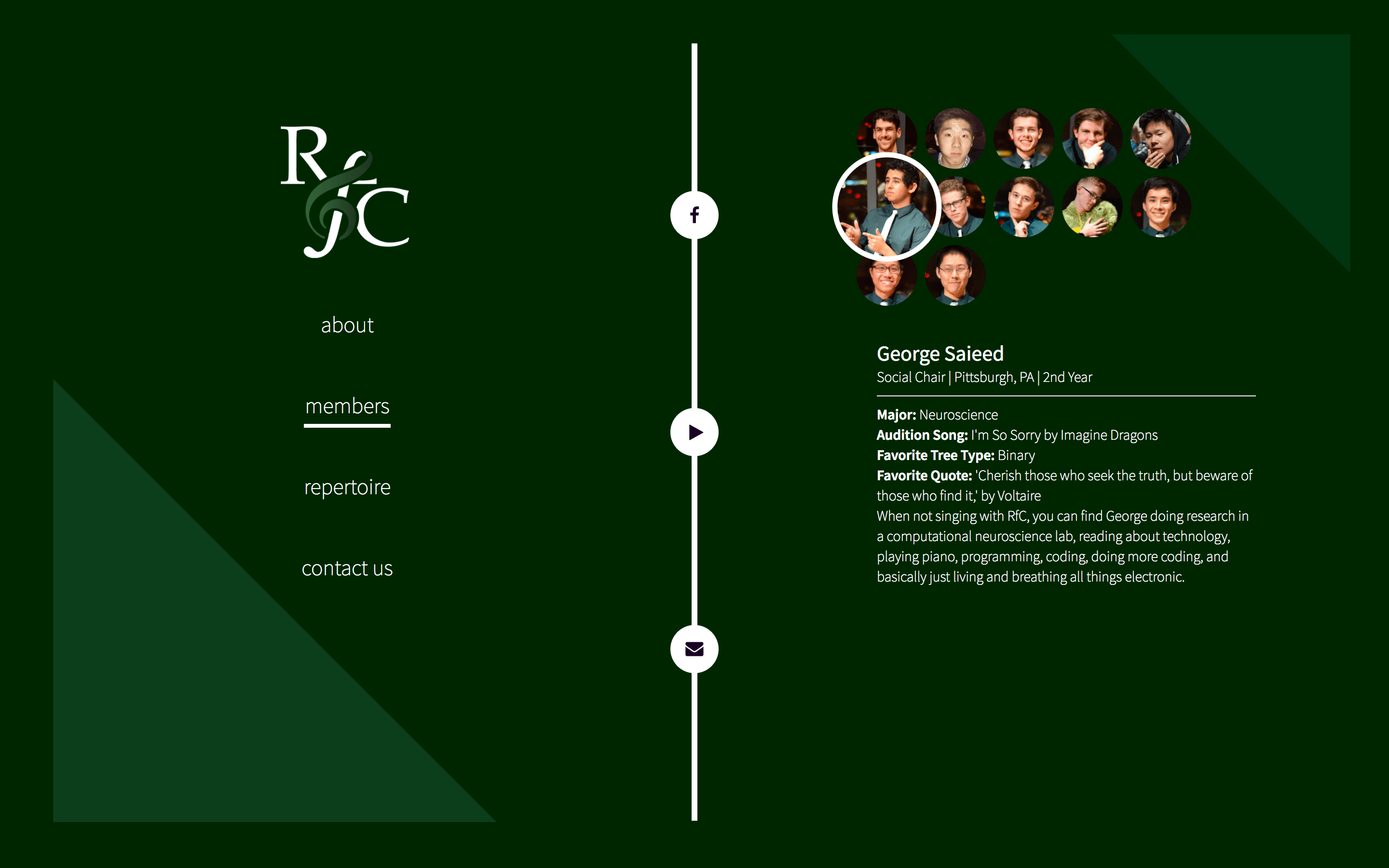I'm a neuroscience major at the University of Chicago, fascinated by the potential application of technology to the field of medicine. I'm a self-taught designer, software developer, and photographer, and was an intern for Accenture in 2017, building demo web applications for various Fortune 500 clients to demonstrate the plausibility of incorporating agile metholodies and DevOps into legacy systems. I most recently interned as a software developer at JPMorgan Chase & Co. Finally, I help conduct research in a comp. neuroscience lab, trying to determine more about how motor neurons communicate.